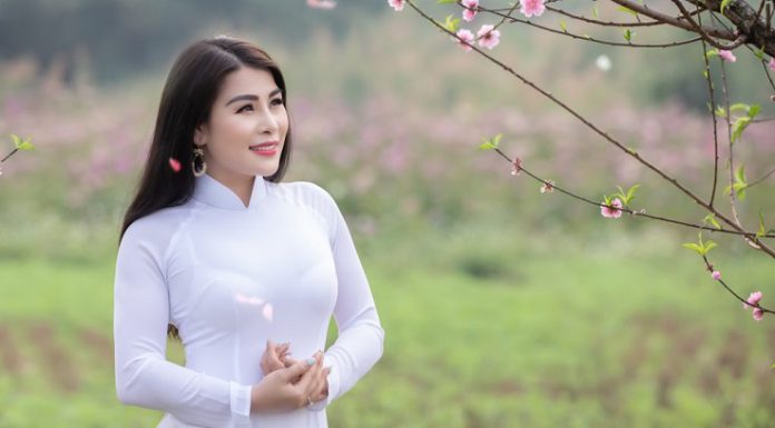 Khoe bộ ảnh mới với tà áo dài nền nã, duyên dáng, hoa hậu Đàm Hương Thủy cầu mong một năm mới may mắn, nhiều khởi sắc.