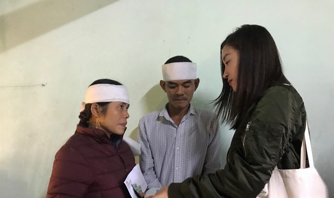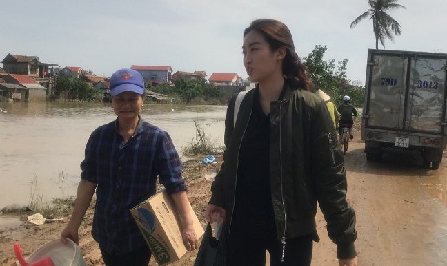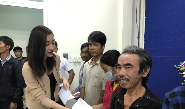 Tối ngày 21/10, Đỗ Mỹ Linh - Tiểu Vy - Lương Thuỳ Linh cùng BTC Hoa Hậu Việt Nam đã bắt đầu trao tiền cho những đồng bào miền Trung ngay khi vừa đặt chân đến Huế.