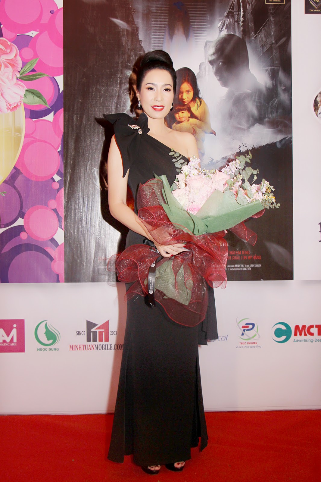 Xuất hiện trong buổi lễ nữ nghệ sĩ đa tài, đa biệt danh Trịnh Kim Chi diện trang phục đầm dạ hội đen sang trọng, quý phái. Dường như có thể nói đây là một trong những người đẹp “không tuổi” bởi cô luôn sở hữu nhan sắc mặn mà, nụ cười thánh thiện dù tuổi đời và tuổi nghề đã rất lâu.