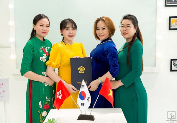 Cô được Hiệp hội BHL (Beauty & Healthy License) – Việt Nam trực thuộc chính phủ Hàn Quốc I.B.H.G.U cấp giấy chứng nhận. Đây là một tổ chức hỗ trợ các trường và trung tâm dạy nghề nhằm đánh giá kiểm chứng tiêu chuẩn nghề – dạy nghề và sản xuất hoá mỹ phẩm theo tiêu chuẩn Chứng nhận của Bộ Y Tế – Cục an toàn về Dược và Thực phẩm Hàn Quốc KFDA (Korean Food and Drug Administration)